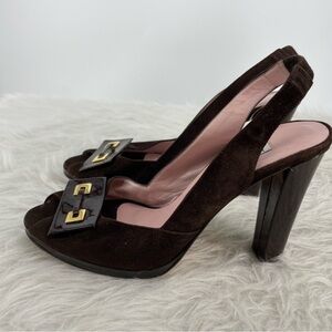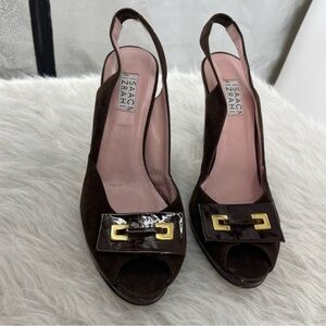 Isaac Mizrahi Brown suede Slingbacks Made In Italy Pumps peep toe Sz 8