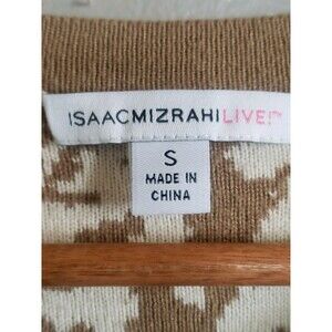 Isaac Mizrahi Button Cardigan Women's Small Brown Tan Damask Jacquard Thick Long