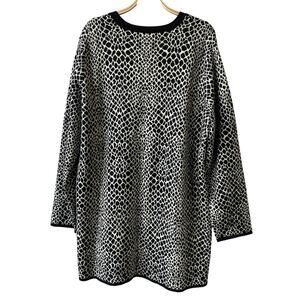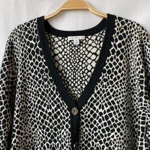 Isaac Mizrahi Cardigan Sweater Women Plus 2X Black White Mosaic Print Old Money