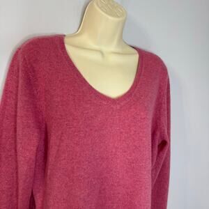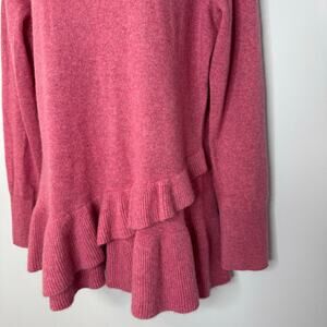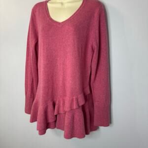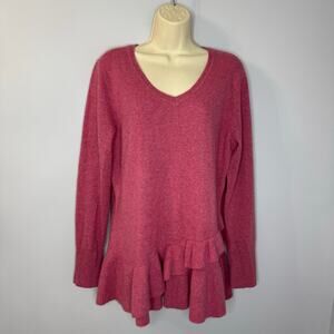 Isaac Mizrahi Cashmere V-Neck Ruffle Peplum Sweater Hthr Rose Soft Women's L