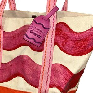 Isaac Mizrahi Crayola pink orange tie dye waves print cotton canvas tote bag