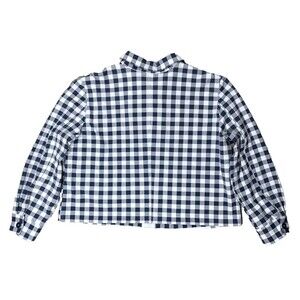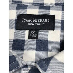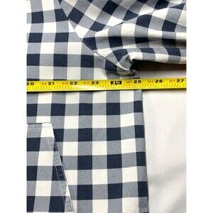 The Isaac Mizrahi New York Women's XXL Navy White Gingham Stretch Twill Crop Jacket is a stylish and versatile addition to any wardrobe. Made from a comfortable blend of spandex, rayon, cotton, and cotton blend, this jacket features a cropped length and long sleeves, making it perfect for a variety of occasions from casual to business. The gingham pattern adds a touch of preppy charm, while the one-button sleeve and four-button front detail give it a classic blazer look. Whether you're traveling, partying, or simply running errands, this Isaac Mizrahi jacket is sure to elevate your style with its relaxed fit and colorful design.