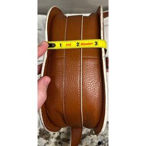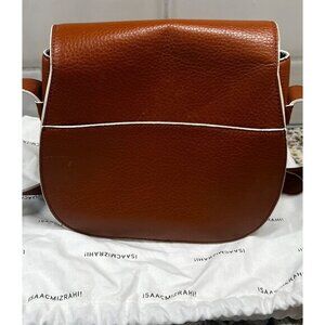 Elevate your accessory collection with this Isaac Mizrahi crossbody saddle bag, designed with sophistication and functionality in mind. The rich brown leather exterior is complemented by a white faux leather trim, creating a timeless and elegant aesthetic. Ideal for carrying essentials, this bag is versatile enough for both casual and formal settings.