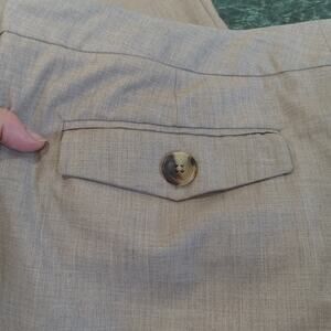 The product is a pair of Isaac Mizrahi dress pants for women in size 14. These brown wool blend pants feature a straight leg style and a high rise waist. They have a solid pattern and a flat front design, making them suitable for various occasions such as workwear, casual wear, or travel. With a mix of polyester, rayon, and wool materials, these pants offer comfort and style for the modern woman looking for a versatile and professional addition to her wardrobe.