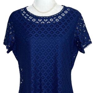 Isaac Mizrahi Dress Stretch Lace Sheath Short Sleeve Navy Blue US Medium M