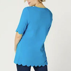 Isaac Mizrahi Elbow Sleeve Scallop Hem Knit Top 10993