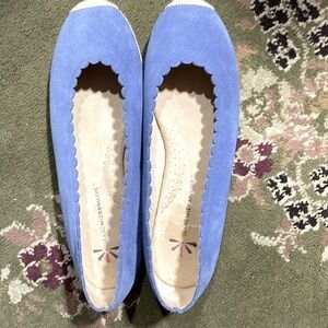 Tag: blue suede shoes, scalloped flats, suede flats, walkable suede flat, office chic,business casual