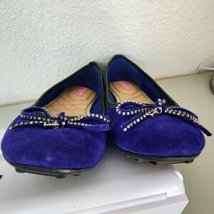 Isaac Mizrahi Faun2 Gem Bow Blue Flats Suede Dressy Ballerina Shoes Size 8