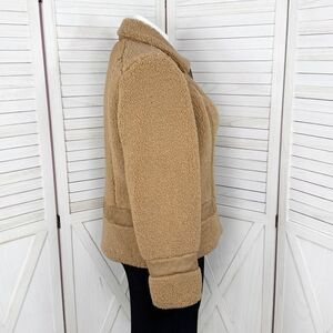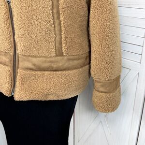 Isaac Mizrahi Faux Sherpa Faux Suede Trim Teddy Coat Tan Large
