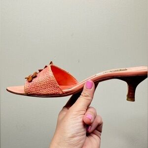 Isaac Mizrahi Floral Appliqué Spring Wicker Weave Pink Peach Sandals Size 6