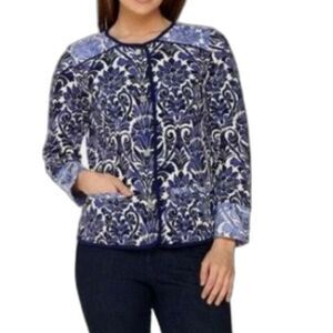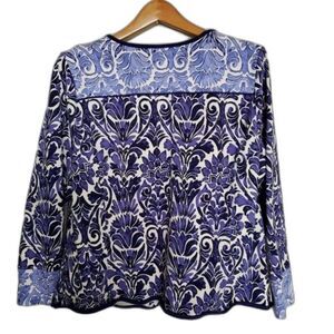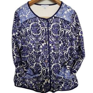 Isaac Mizrahi Floral Print Cardigan Blue Size Medium – Button Front Knit Top