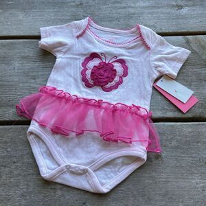 Isaac Mizrahi Girls Bodysuit Size 6-9 Months Pink Butterfly Tulle Skirted NEW