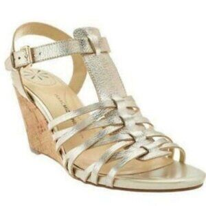 Isaac Mizrahi Gold Leather Strappy Cork Wedge Sandals Size 10W
