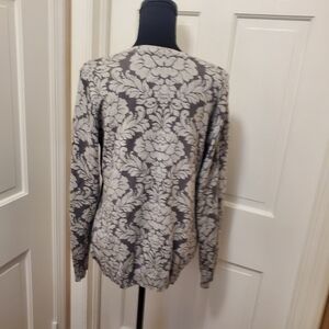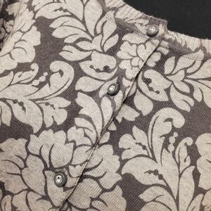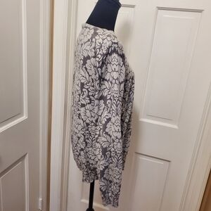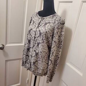 Isaac Mizrahi Gray Floral Print Knit Cardigan Size Large Business Casual Classic