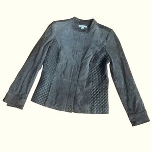 Isaac Mizrahi Gray Leather Suede Moto Jacket Sz 4 Full Zip Snap Long Sleeve