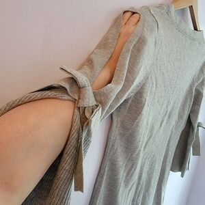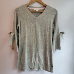 Stylish V-neck sweater by Isaac Mizrahi. Features tie sleeves. Soft and comfortable fabric. I thought it said XXL so my bad.