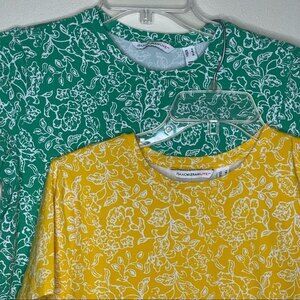 Isaac Mizrahi Green Yellow Floral T Shirts Set of 2 Size Small