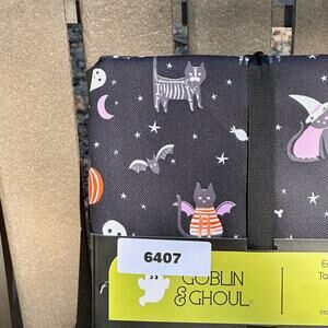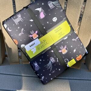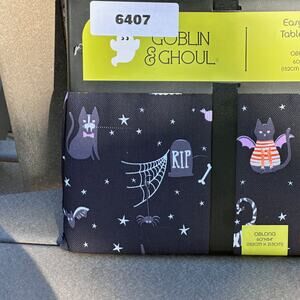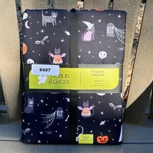 Isaac Mizrahi Halloween Black Tablecloth 60x84 Puppies Candy Corn Witch Hat NWT