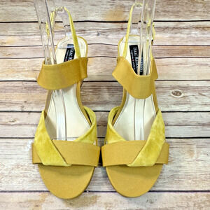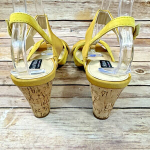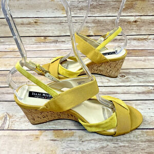 Isaac Mizrahi Highline United Womens Yellow Suede Leather Cork Wedge Sandals 9M