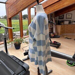 From my closet, new without tags, super soft and cozy with fun stripes. Smoke and pet free home. One tiny mark on one other pull strings. I'm sure it will come out but I do not want to wash it as it's new. Size XL
