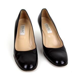 Isaac Mizrahi ITALY BLACK GENUINE LEATHER MID HEEL CLASSIC PUMP SHOES Sz 8B