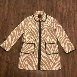 Isaac Mizrahi Jacket Animal Print Trench Coat Tan, Cream X-Small New