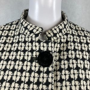 Isaac Mizrahi Jacket Womens Sz 12 Black White Tweed Wool Blazer Logo Buttons