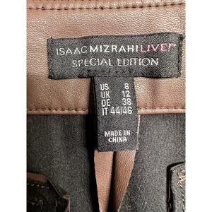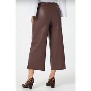 Isaac Mizrahi LIVE Vegan Leather Brown Wide Leg Cropped Pants w/ Side Zip, Sz 8
