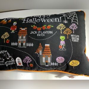 Isaac Mizrahi Large Lumbar Pillow Embroidered Halloween Village Candy Lane