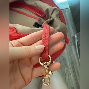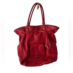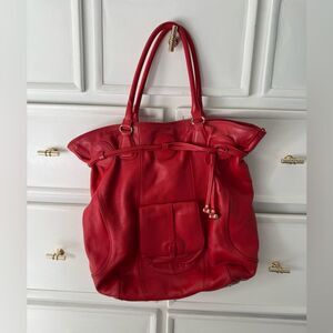 Isaac Mizrahi Large RED 100% genuine Leather Bag Tote Purse gold hardware