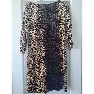 Isaac Mizrahi Leopard Print Dress. Faux velvet, very soft. 3/4 sleeve. Size Small, loose fit, could fit a medium also but please review approximate measurements. Perfect fall dress. Excellent condition.