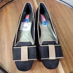 Isaac Mizrahi Linen Bow Front Square Toe Flats Size 6.5