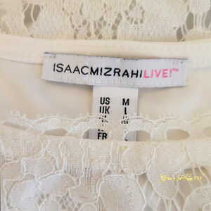 Isaac Mizrahi Live! 3/4Bell Sleeve Scalloped Trim Layered Lace Tunic Top Ivory M