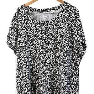 Isaac Mizrahi Plus Size Dress, Floral Button Dress, 5X Summer Dress, Boho Casual Wear, Lightweight Cotton Modal Dress, Geo Print, Lounge Dress, Black White Printed Dress, Button Front Plus Size Clothing