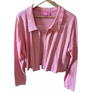 Isaac Mizrahi Live! Always Collared Cardigan Women's Top Sweater Large Pink