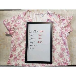 Isaac Mizrahi Live Blouse Sz 1X Short Sleeve Layered Eyelet Pink White Floral