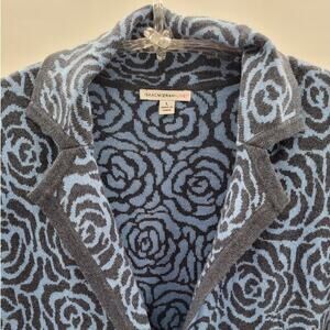 Isaac Mizrahi Live Blue Gray Floral Resortwear 2 Button Sweater Jacket