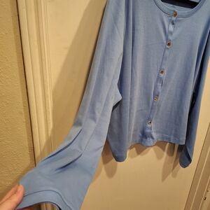 Isaac Mizrahi Live Blue Knit Snap Front Cardigan Shirt Jacket 4X Travel Casual