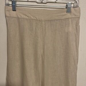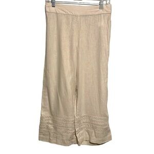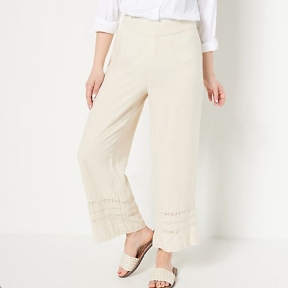 Isaac Mizrahi Live! Bridgehampton Linen Blend Pants Wide Leg Cropped Cream 8