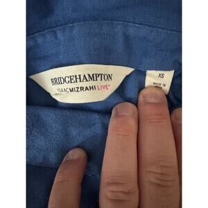 This item is a Isaac Mizrahi Live! Bridgehampton Linen Tunic with Lace Trim. It is blue and is a size XS. This item has never been worn. It does not have attached tags but does have the original packaging that it came with. I opened the packaging in order to take photos and measurements for this listing.