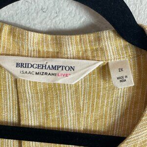 Isaac Mizrahi Live Bridgehampton Womens Plus 2X Mustard Striped Linen Tunic Top