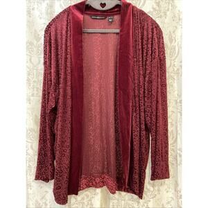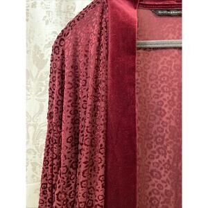 Isaac Mizrahi Live! Burgundy Velvet Leopard Print Open Front Cardigan - Size M