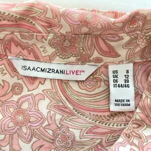 Isaac Mizrahi Live Button-Up Tunic Top Women's Size 8 Pink Tan Floral Long Sleeve