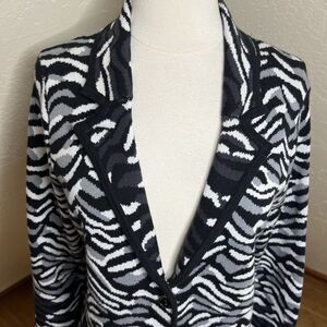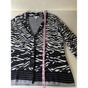 Isaac Mizrahi Live Cardigan Womens Medium Black Zebra Jacquard Button Front