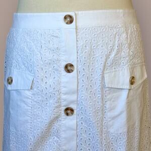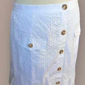 Isaac Mizrahi Live Embroidered Eyelet Button Up Ruffled Hem Skirt Size 28W White