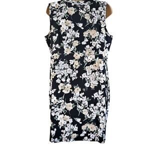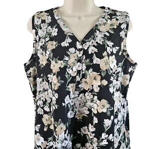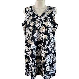 Isaac Mizrahi dress, sleeveless tank dress, floral dress, medium petite, women’s casual dress, summer dress, Henley neckline, black floral print, NWOT