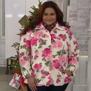 Isaac Mizrahi Live! Floral Printed Shearling coat
