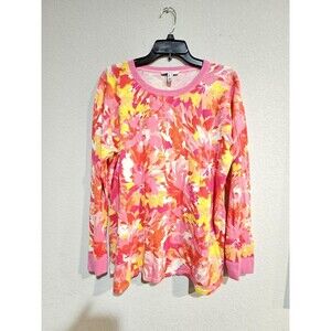 Isaac Mizrahi Live! Floral Printed Sweater w/ Cover Stitch PINK M A393580