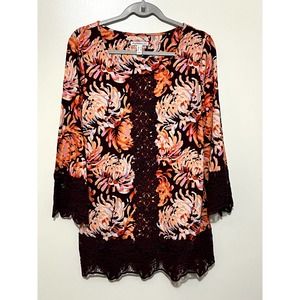 Isaac Mizrahi Live Floral Tunic Lace Wine Orange Size Small New without tags