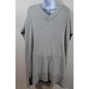 Isaac Mizrahi Live Gray White True Denim Lace Up Poncho Sweater XL Stretch Soft